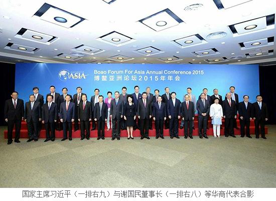 3月26-29日,博鰲亞洲論壇2015年年會(huì)在海南省博鰲舉行,本屆年會(huì)主題為“亞洲新未來:邁向命運(yùn)共同體”。3月28日,國家主席習(xí)近平出席了年會(huì)開幕式,發(fā)表了題為《邁向命運(yùn)共同體 開創(chuàng)亞洲新未來》的主旨演講,并與正大集團(tuán)謝國民董事長等出席博鰲亞洲論壇2015年年會(huì)的華商代表合影留念。